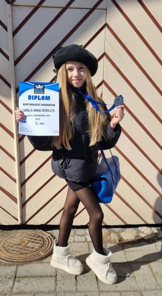 Серебро в чемпионате Эстонии до 12 лет среди девочек завоевала Камилла Анна Рюдигер. Камилла сейчас редко выступает на соревнованиях, но бескомпромиссный стиль и бойцовский характер всегда при ней. Покорив зрителей безупречным fashion-стилем, Камилла победила в шести партиях из семи, уступив только будущей чемпионке Марте Тимошиной (Vabaettur).